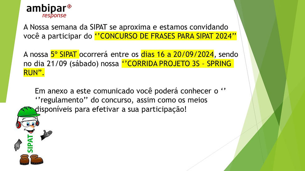 Concurso de Frases SIPAT 2024 - AMBIPAR RESPONSE INDUSTRIAL SERVICES - RIO DAS OSTRAS